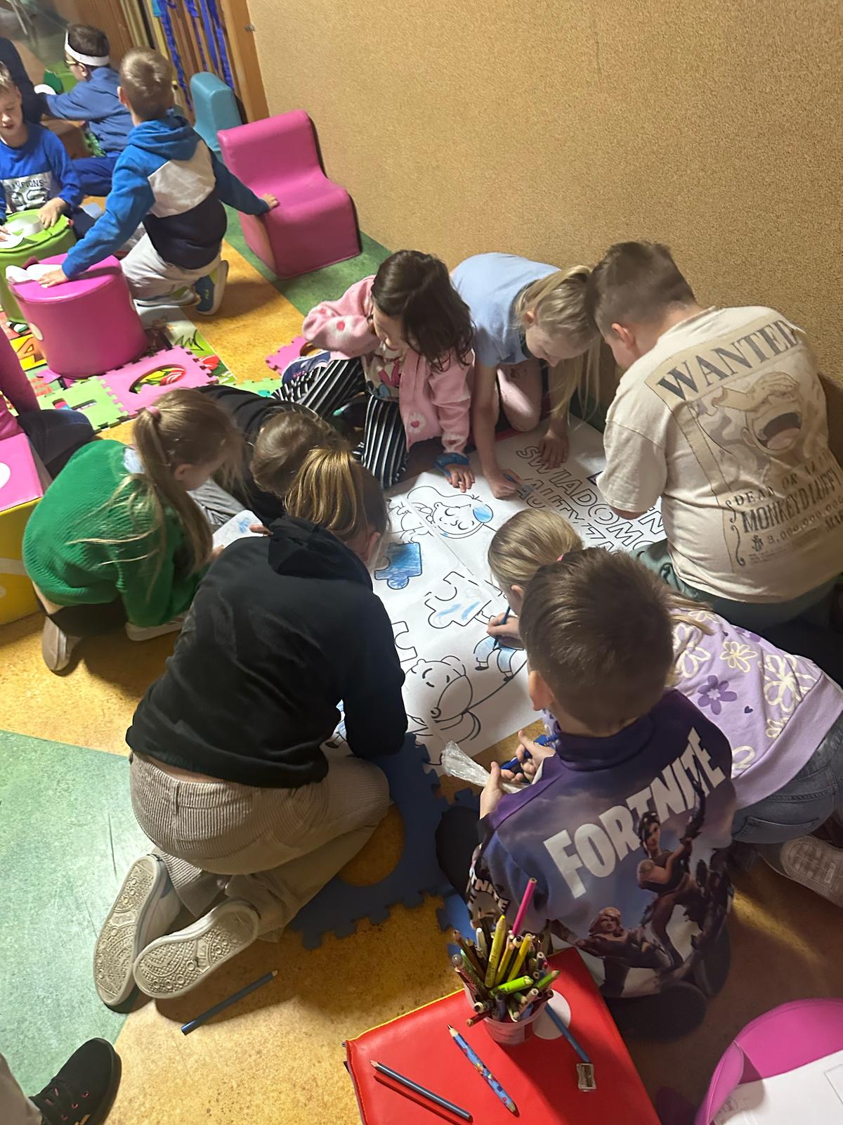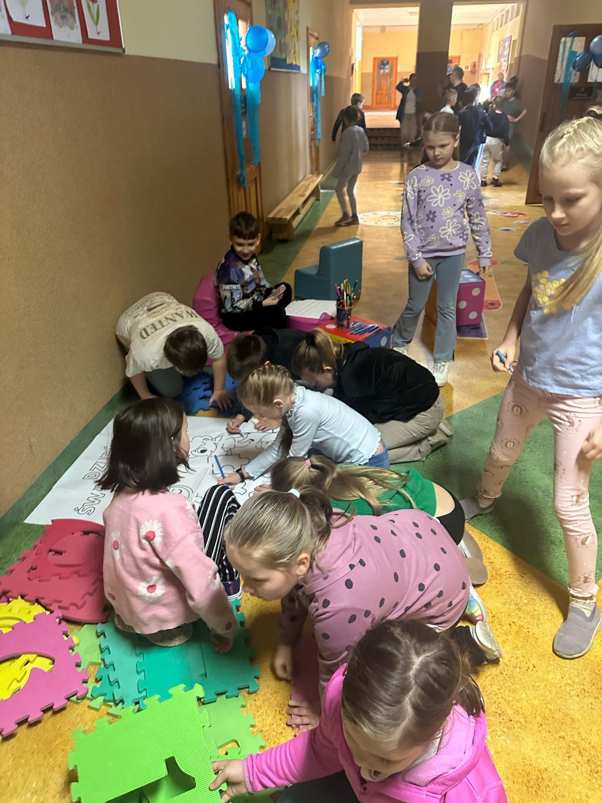 2 kwietnia nasza szkoła przyłączyła się do obchodów Światowego Dnia Świadomości Autyzmu. W tym dniu wiele budynków zostanie podświetlonych na niebiesko jako wyraz solidarności o osobami z autyzmem i ich rodzinami. Korytarze w naszej szkole przybrały niebieską barwę, która dominowała w ubiorze uczniów, nauczycieli i pracowników obsługi. Celem tej corocznej akcji jest zwiększenie świadomości społecznej na temat autyzmu oraz zwrócenie uwagi na potrzebę większej empatii i tolerancji dla osób ze spectrum autyzmu. Kampania przyczynia się do kształtowania właściwych postaw prospołecznych oraz przeciwdziałania wykluczeniu społecznemu. Nasi najmłodsi uczniowie chętnie angażowali się w kolorowanie gigantycznej malowanki, układanie puzzli czy wykonywanie ozdób papierowych. Nasi uczniowie jak widać na załączonych zdjęciach chętnie zaangażowali się w kolorowanie gigantycznej malowanki, układanie puzzli czy też wykonywanie ozdób papierowych wspierających akcję. Nad dzisiejszym wydarzeniem opiekę przejął Parlament Uczniowski wraz z opiekunami” mgr Księska Urszula , mgr Andrzejczyk- Wąsik Izabela oraz Panie Pedagog z naszej szkoły mgr Grzelczak Barbara oraz mgr Majchrowska Monika.