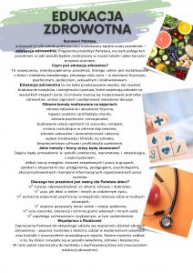 od nowego roku szkolnego wprowadzamy do planu nowy przedmiot – Edukacja zdrowotna. Jego celem jest wspieranie uczniów w kształtowaniu zdrowego stylu życia, dbaniu o kondycję fizyczną i psychiczną, a także w rozwijaniu odpowiedzialnych postaw wobec własnego zdrowia i bezpieczeństwa.