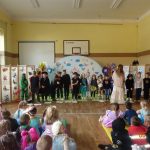 Obchody rozpoczęła inscenizacja pt. „Baśniowy Ambaras” w wykonaniu uczniów klasy 3b pod opieką pani Beaty i Zuzanny Dudkiewicz, wg scenariusza Doroty Dańkowskiej, z oprawą muzyczną Wandy Gemel-Jajszczak, scenografią w wykonaniu rodziców ucznia Karola Zaparta oraz dekoracjami pani Beaty, Urszuli, Zuzanny i Wandy. Mali aktorzy z ogromnym zaangażowaniem przedstawili krainę bajek w której wszystko się pomieszało. Bohaterowie w zabawny sposób postarali się znaleźć rozwiązanie, odszukując Królowę Fantazję, która pomogła posprzątać bajkowy bałagan. Uczniowie – aktorzy barwnie odegrali swoje role, dostarczając publiczności niezapomnianych wrażeń, za co zostali obdarowani gromkimi brawami oraz medalami przygotowanymi dla aktywnych uczestników świętowania bajkowego dnia. W dalszej części uroczystości