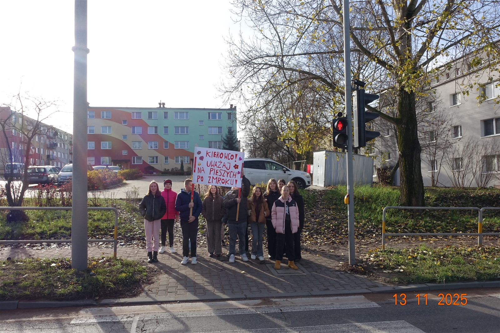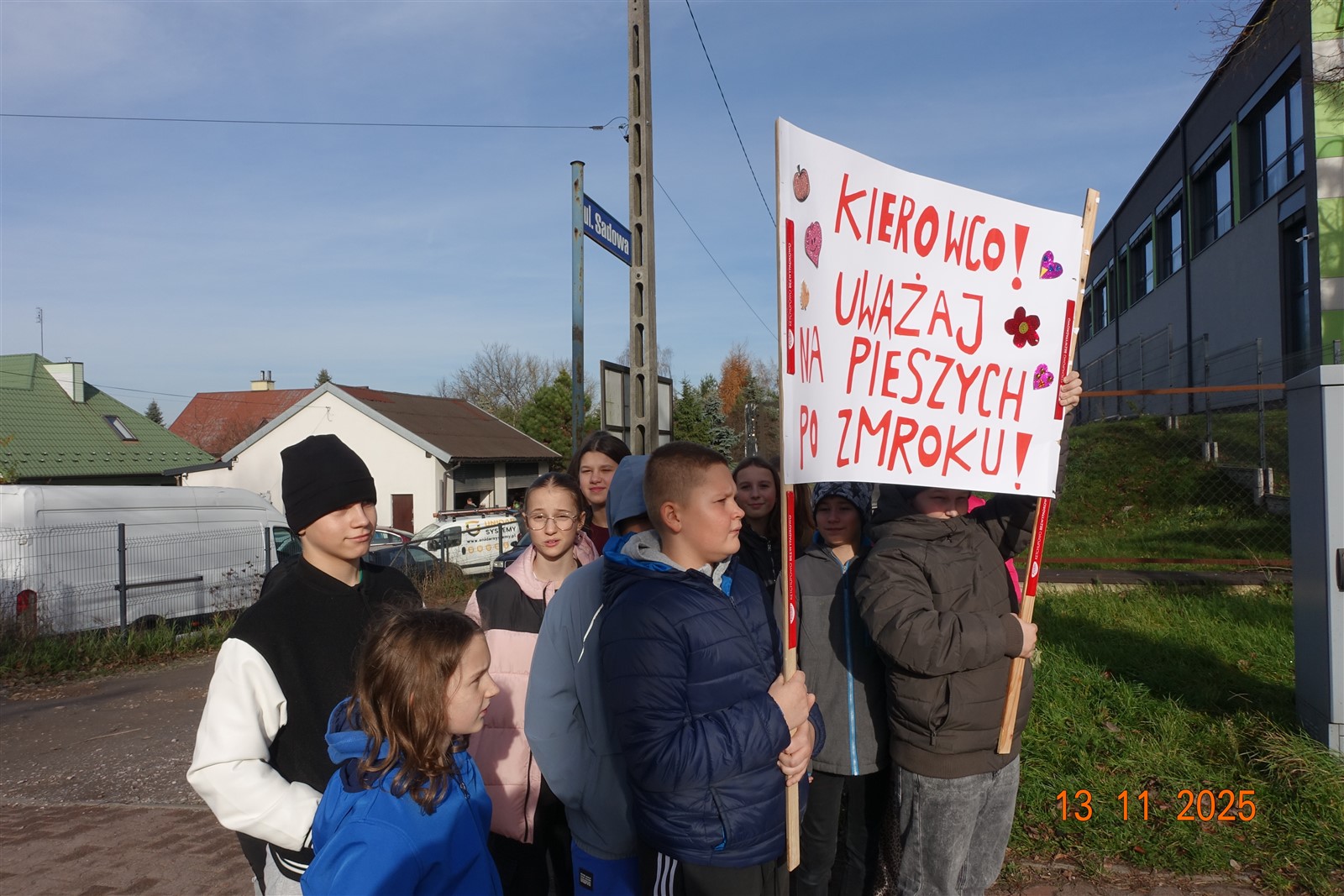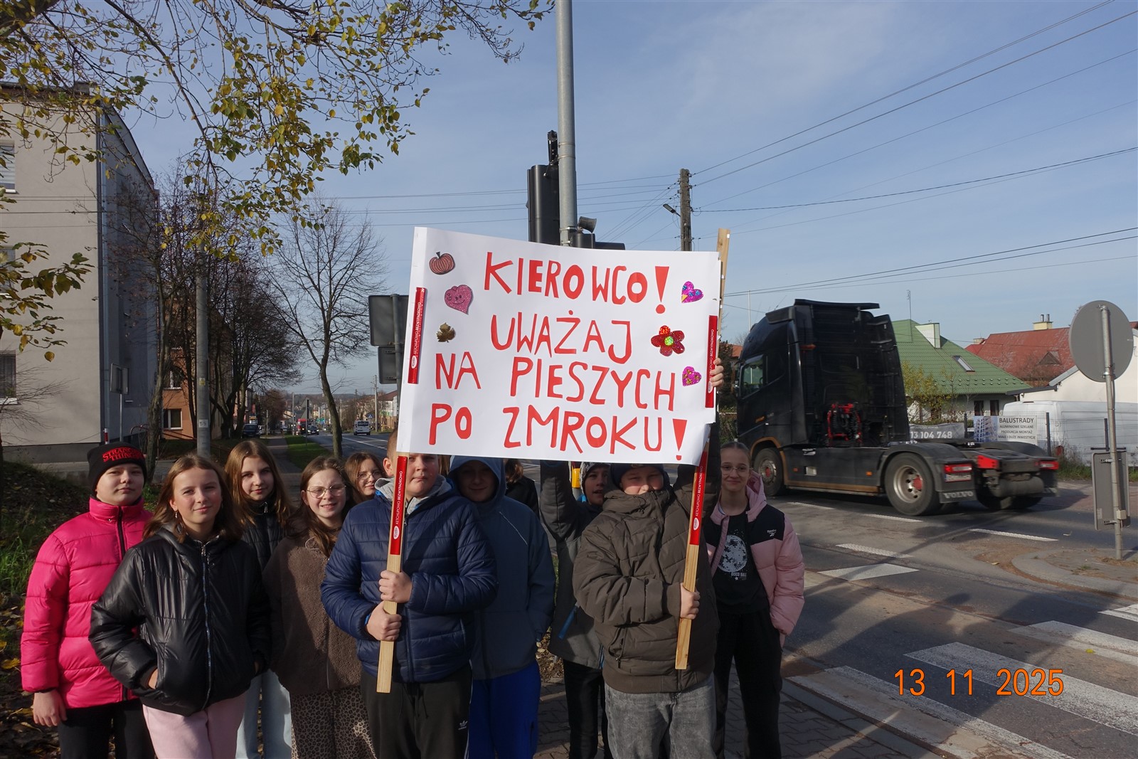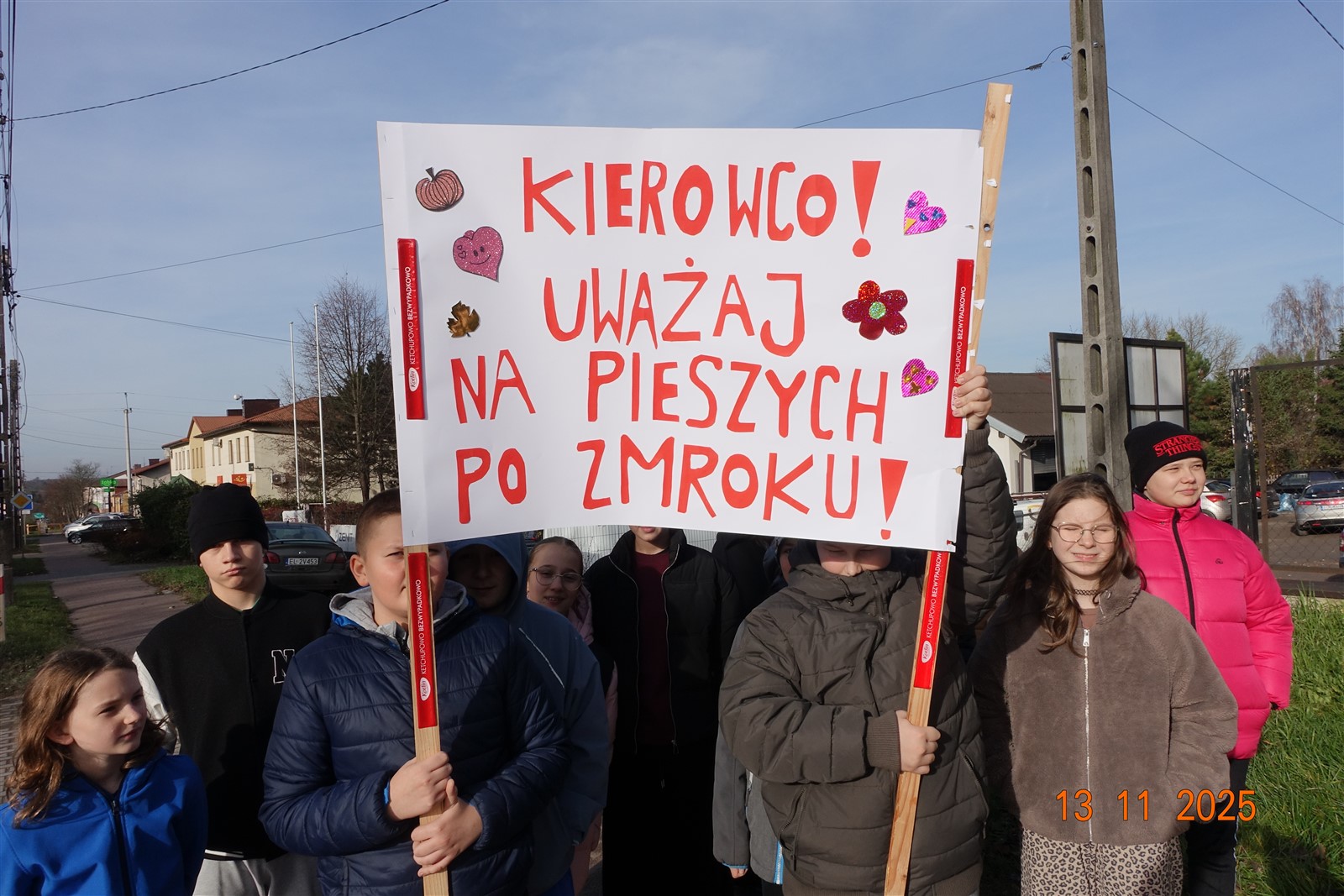 13 listopada na przejściu dla pieszych obok szkoły odbyła się manifestacja uczniów, propagujących bezpieczeństwo po zmroku. Akcja ma na celu przypominać kierowcom, żeby zwolnili i zwracali uwagę na innych. Kierowcy są przecież nie jedynymi uczestnikami ruchu drogowego.