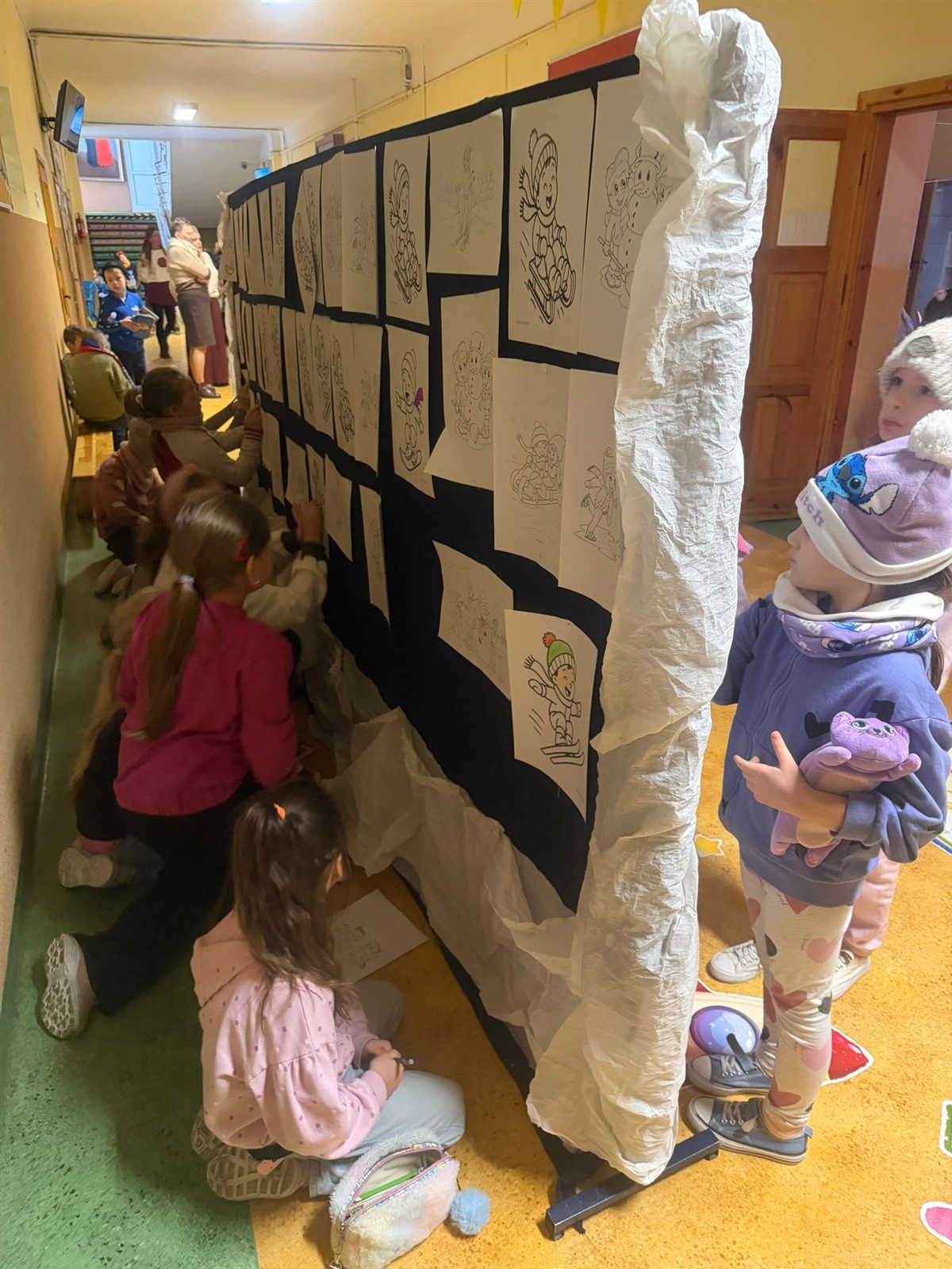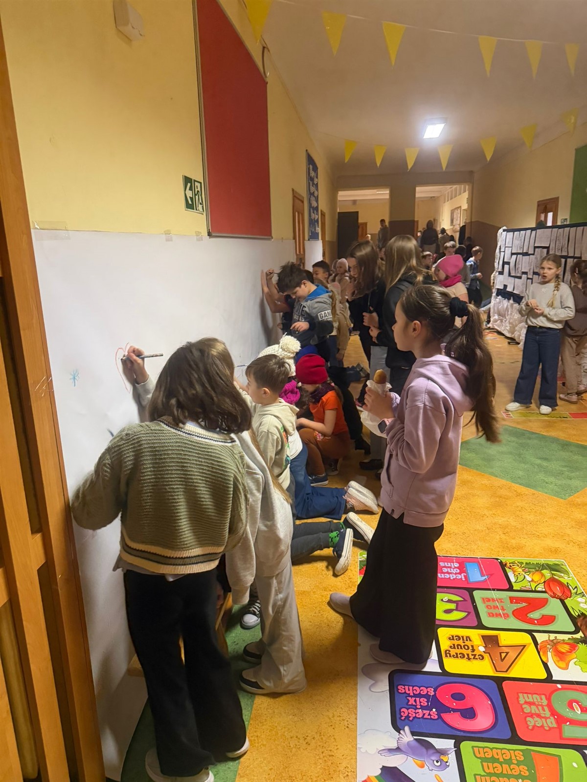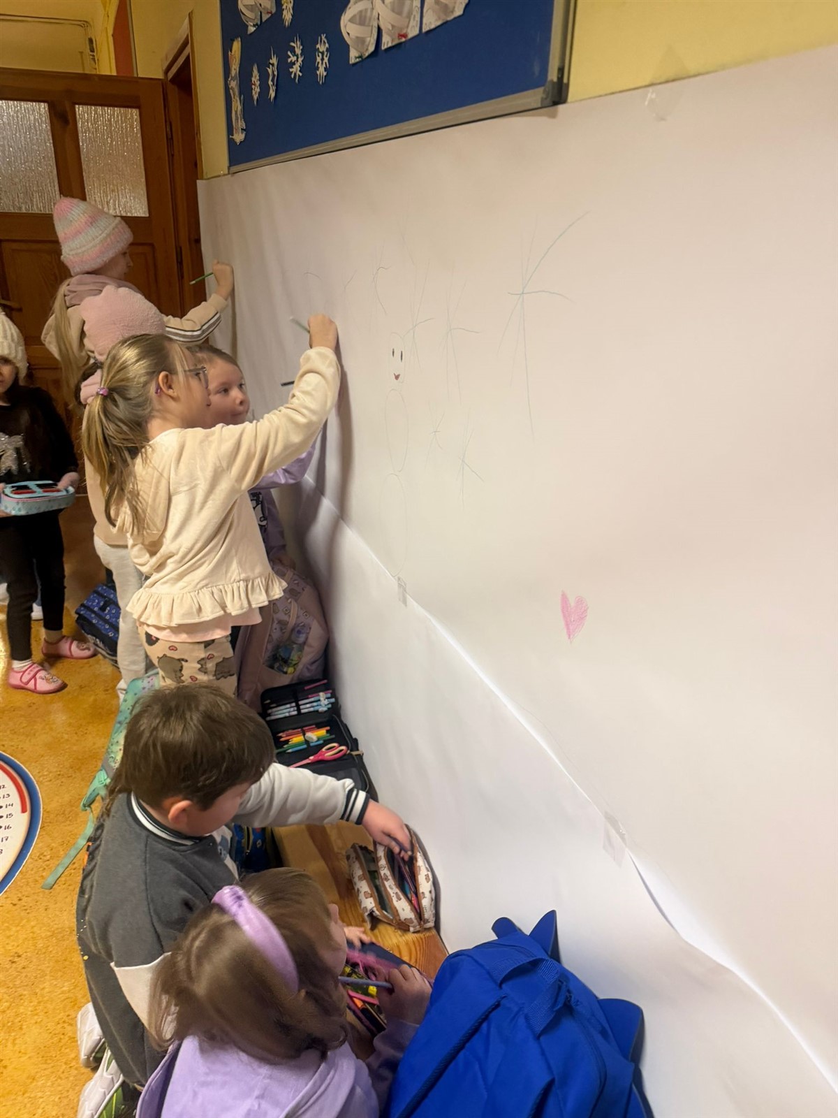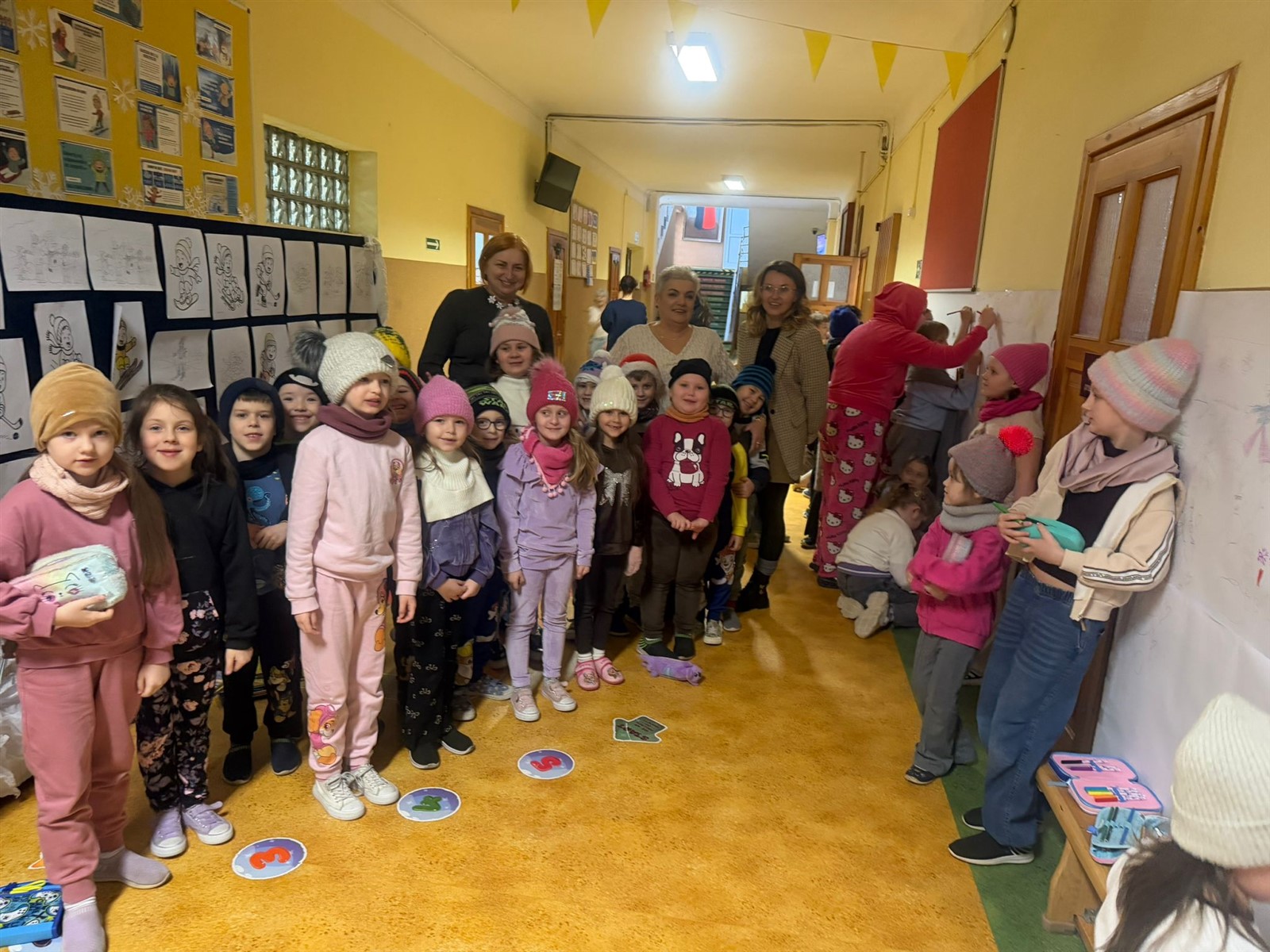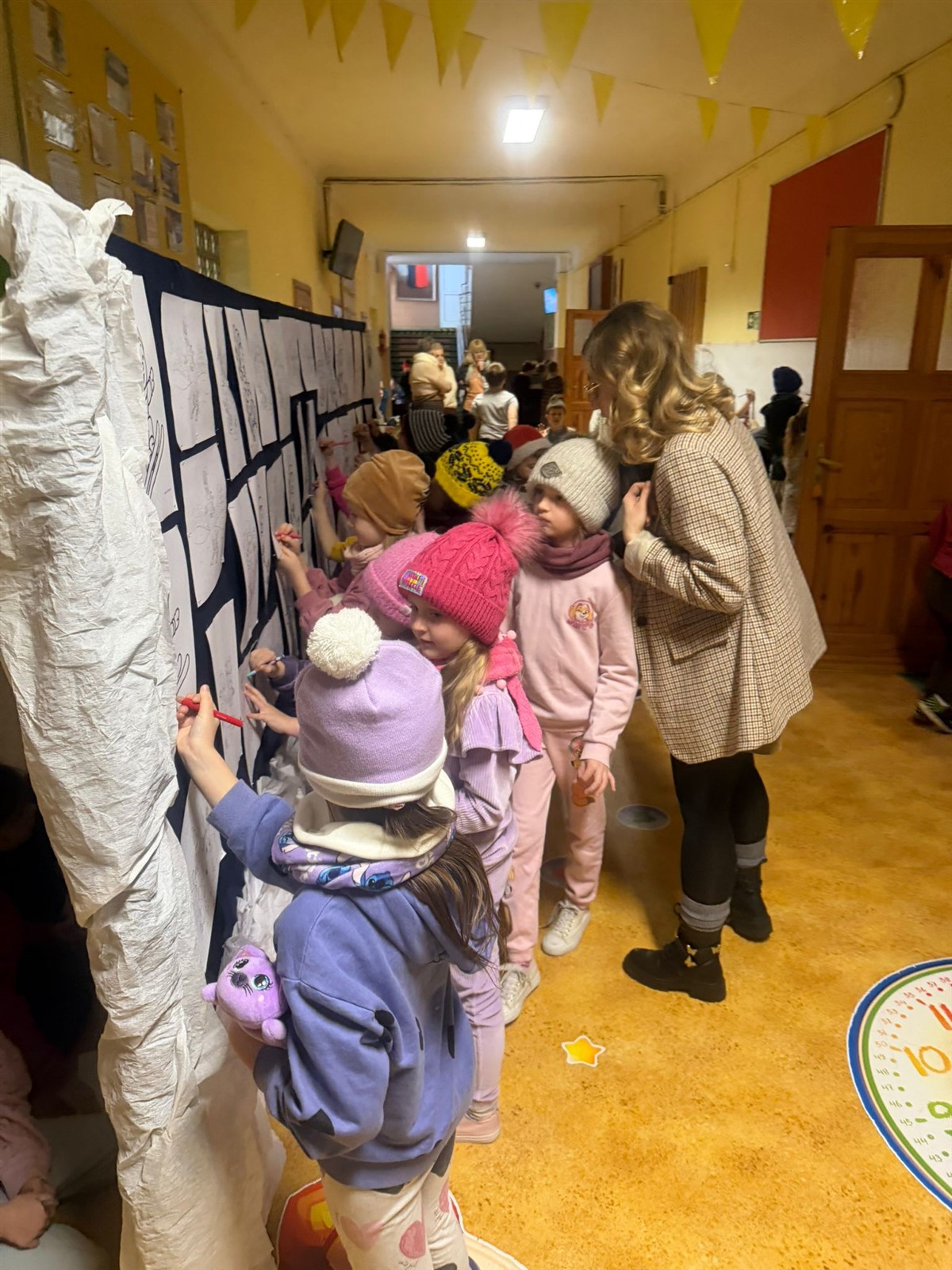 Uczniowie klas 0-3 brały udział w projekcie plastycznym BEZPIECZNE ZABAWY NA ŚNIEGU , tego dnia podczas przerw klasy młodsze mogły wykazać się inwencją plastyczną( na korytarzach były poustawiane stojaki z ogromnymi kartonami na których to, wspólnie stworzono projekt BEZPIECZNE ZABAWY NA ŚNIEGU pod okiem wychowawców i pań pedagogów naszej szkoły p. Ewy Grzelczak i p. Moniki Majchrowskiej oraz opiekunów Parlamentu Uczniowskiego naszej szkoły p. Uli Księskiej oraz p. Izabeli Andrzejczyk Wąsik. Uczniowie klas 4-8 ubrani w czapki, rękawiczki i szaliki brali udział w zabawie- KTO PRZEBRANY TEN NIEPYTANY.