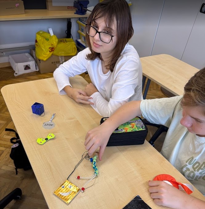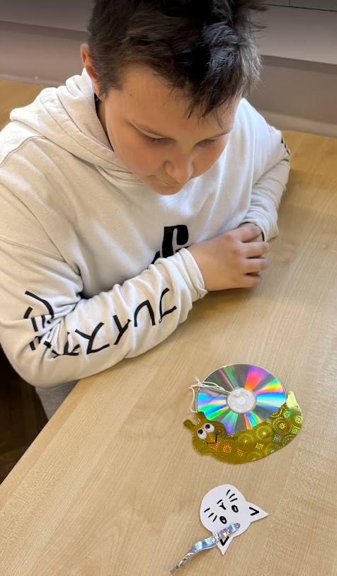 Uczniowie klas 4-6 na lekcjach techniki wykonywali odblaski w różnych formach i wielkościach najczęściej z materiałów przeznaczonych do recyklingu. Inni uczniowie z klas 1-3 i 7-8 odblaski wykonywali w domu lub na świetlicy szkolnej.