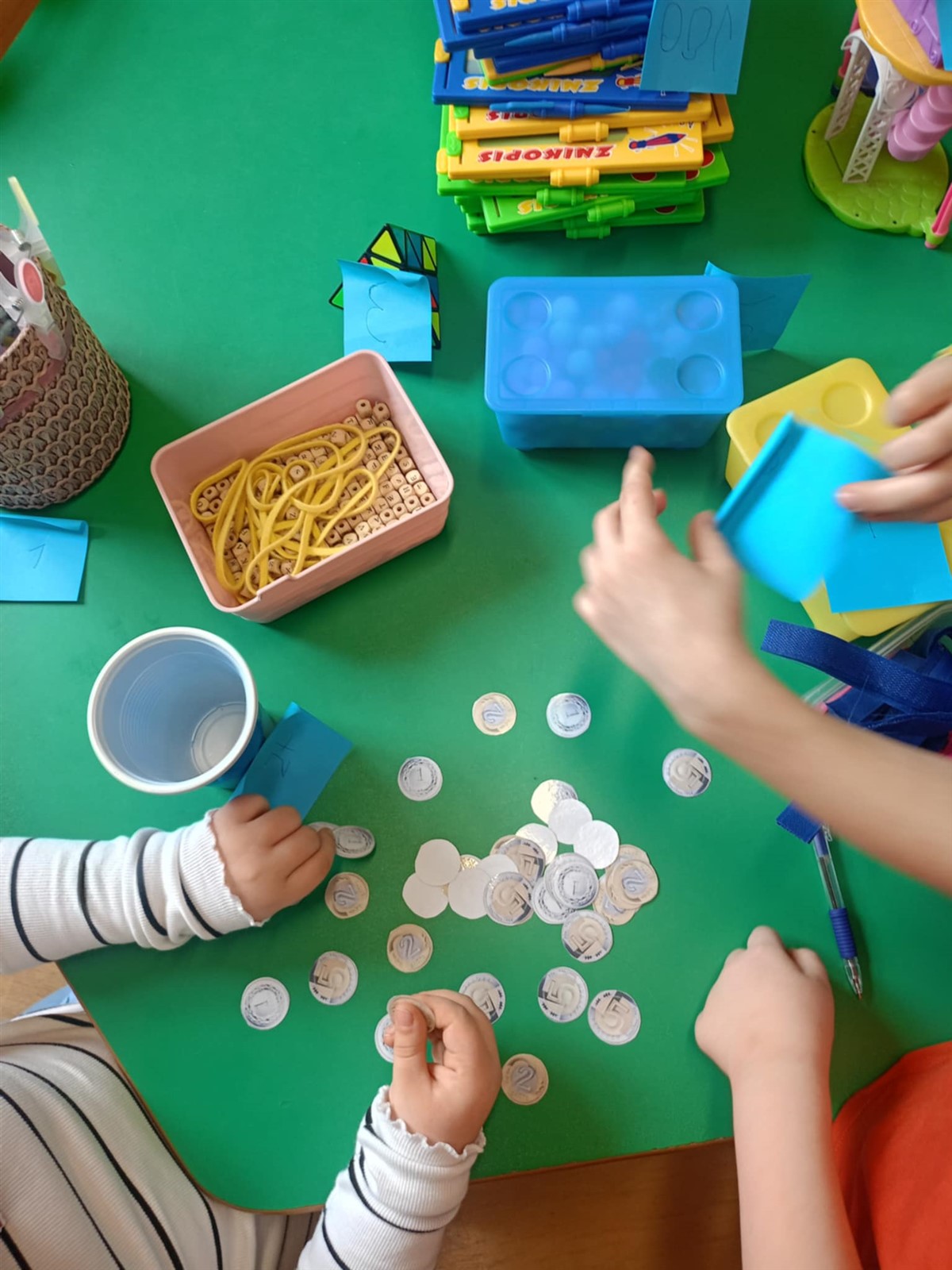 Klasa 0 pracuje według założeń pedagogiki Marii Montessori. Metoda ta w swoim założeniu między innymi pomaga w rozwijaniu czynności samoobsługowych, wspomaga samodzielne myślenie oraz rozwój małej motoryki. W nabyciu tych umiejętności pomagają ćwiczenia typu: przelewanie wody, przesypywanie kaszy, zabawa spinaczami, pincetą, zabawa rzepami, suwakami, sznurówkami, guzikami, fasolkami, nawlekanie koralików czy nakrywanie do stołu. Matematyki uczymy się Czytaj dalej